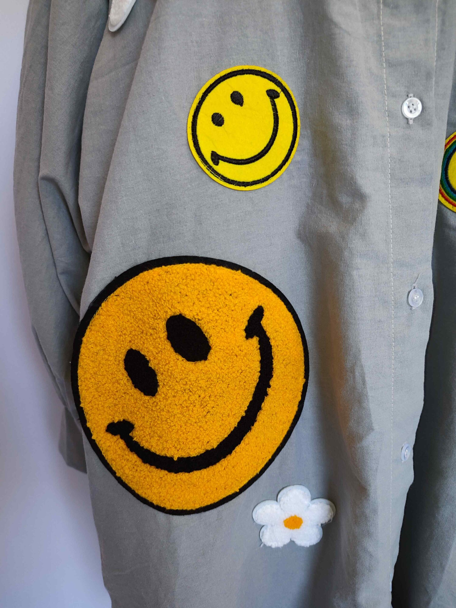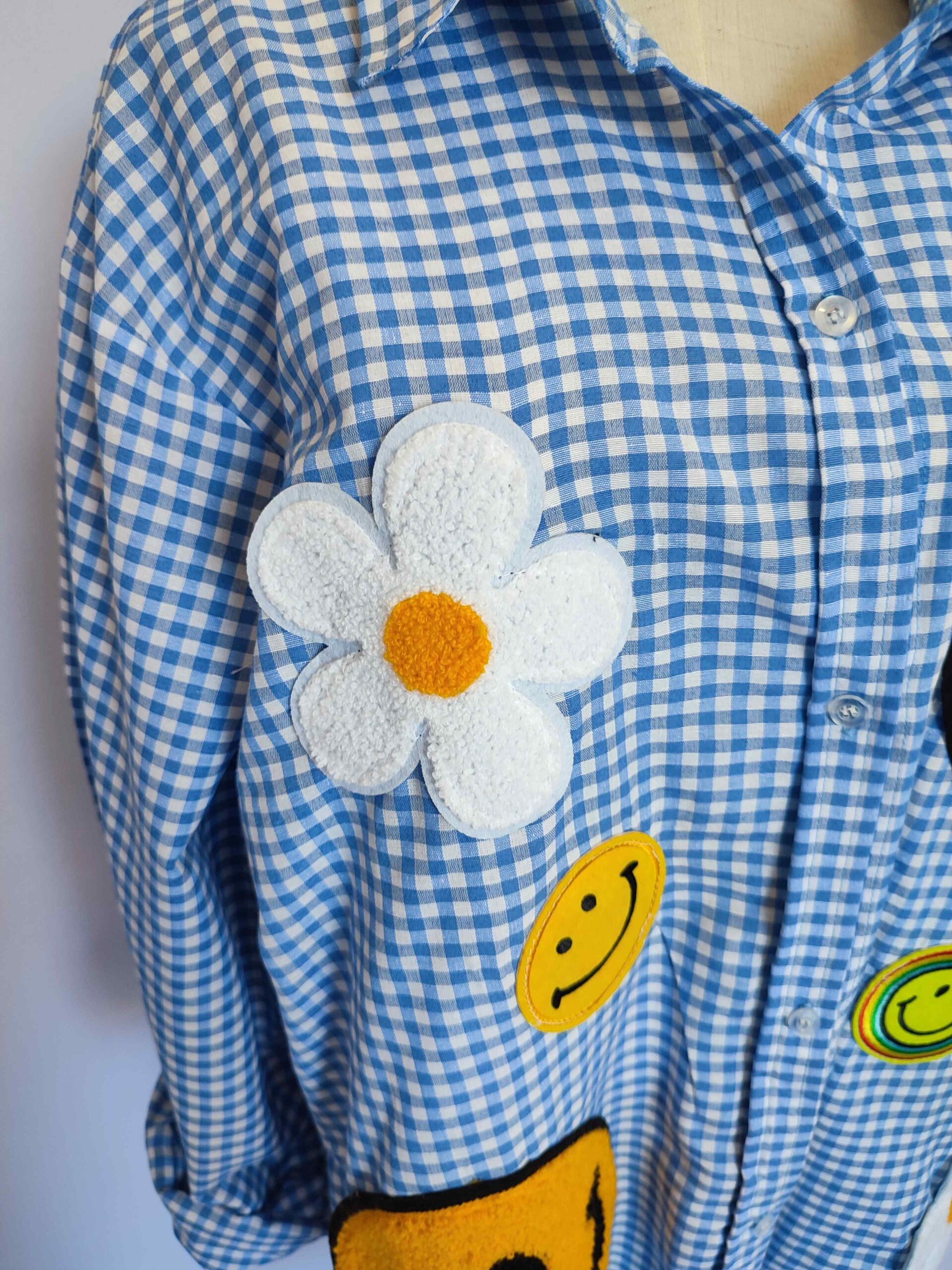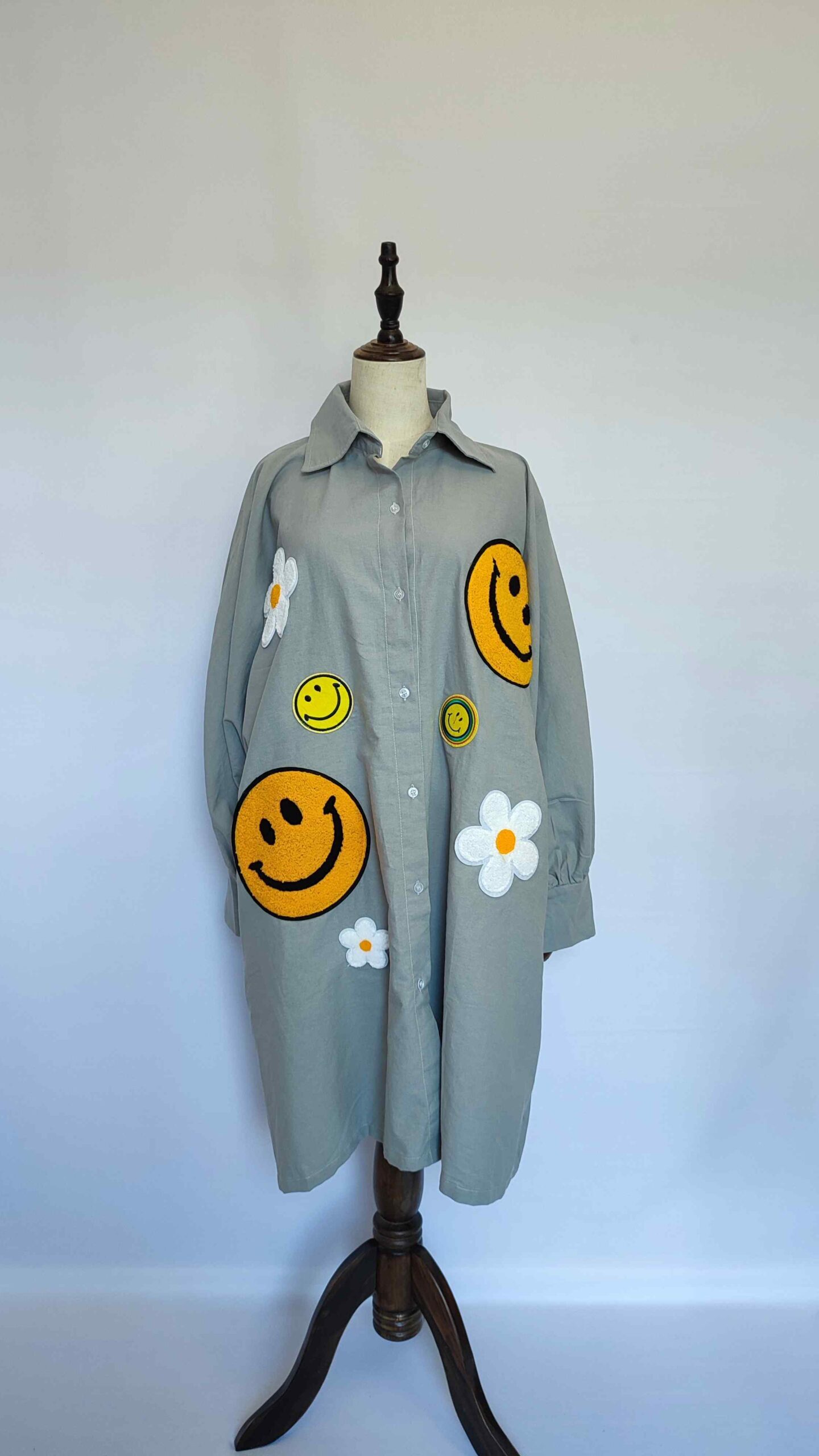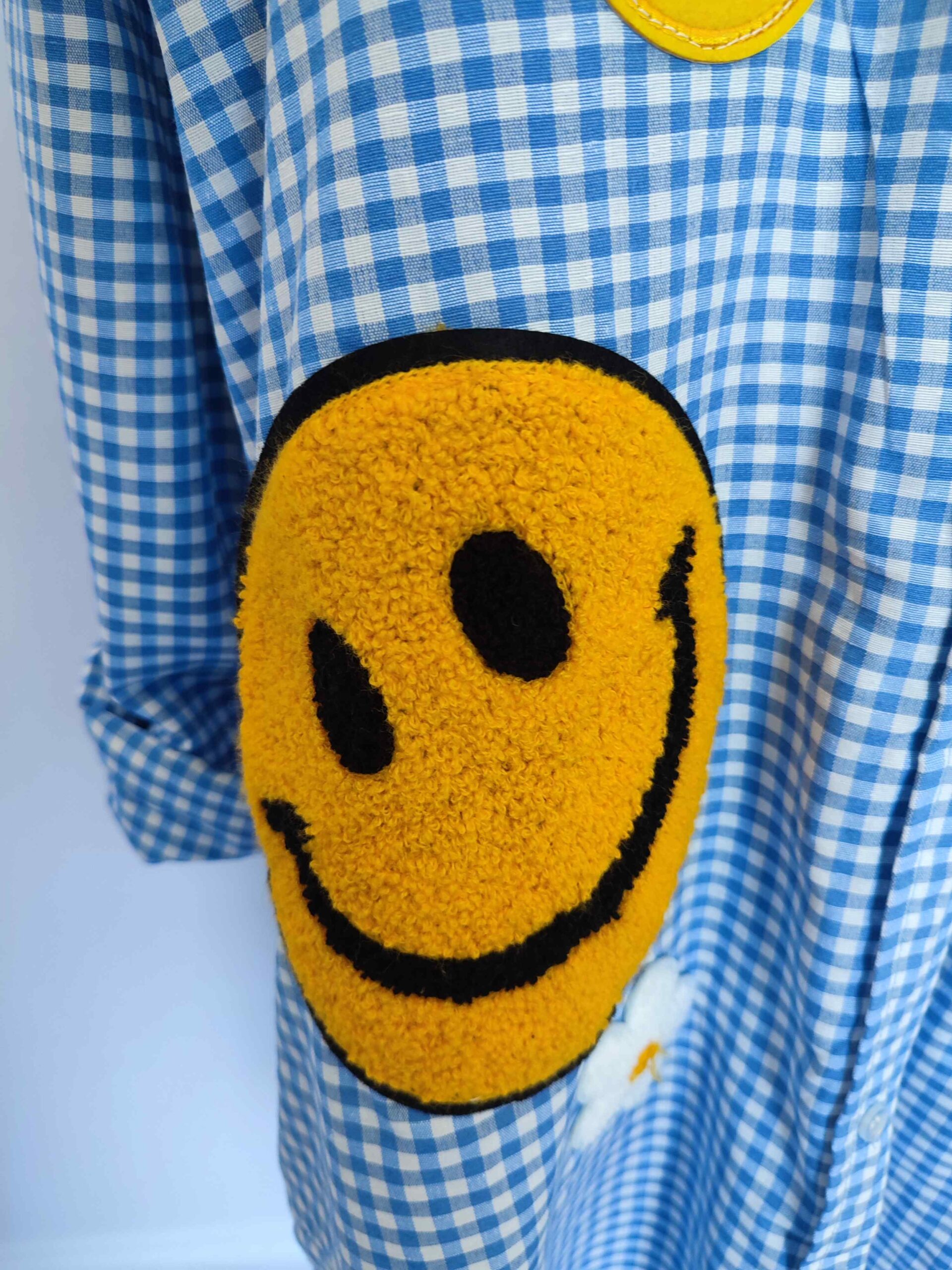 Make a bold statement with our fine check dress shirt featuring large smiling emoji details and embroidered flowers. This shirt is the perfect blend of sophistication and playful charm. The fine check pattern adds a touch of elegance, while the large smiling emoji details bring a whimsical twist to your attire. The embroidered flowers add a delicate and feminine touch, creating a unique and eye-catching design. Whether it’s a casual gathering or a special occasion, this dress shirt will make you stand out in the crowd. Pair it with your favorite trousers or a sleek skirt for a fashion-forward ensemble that exudes both confidence and joy. Embrace the perfect fusion of style and fun with our check dress shirt adorned with smiling emojis and embroidered flowers. Shop now and embrace your individuality!