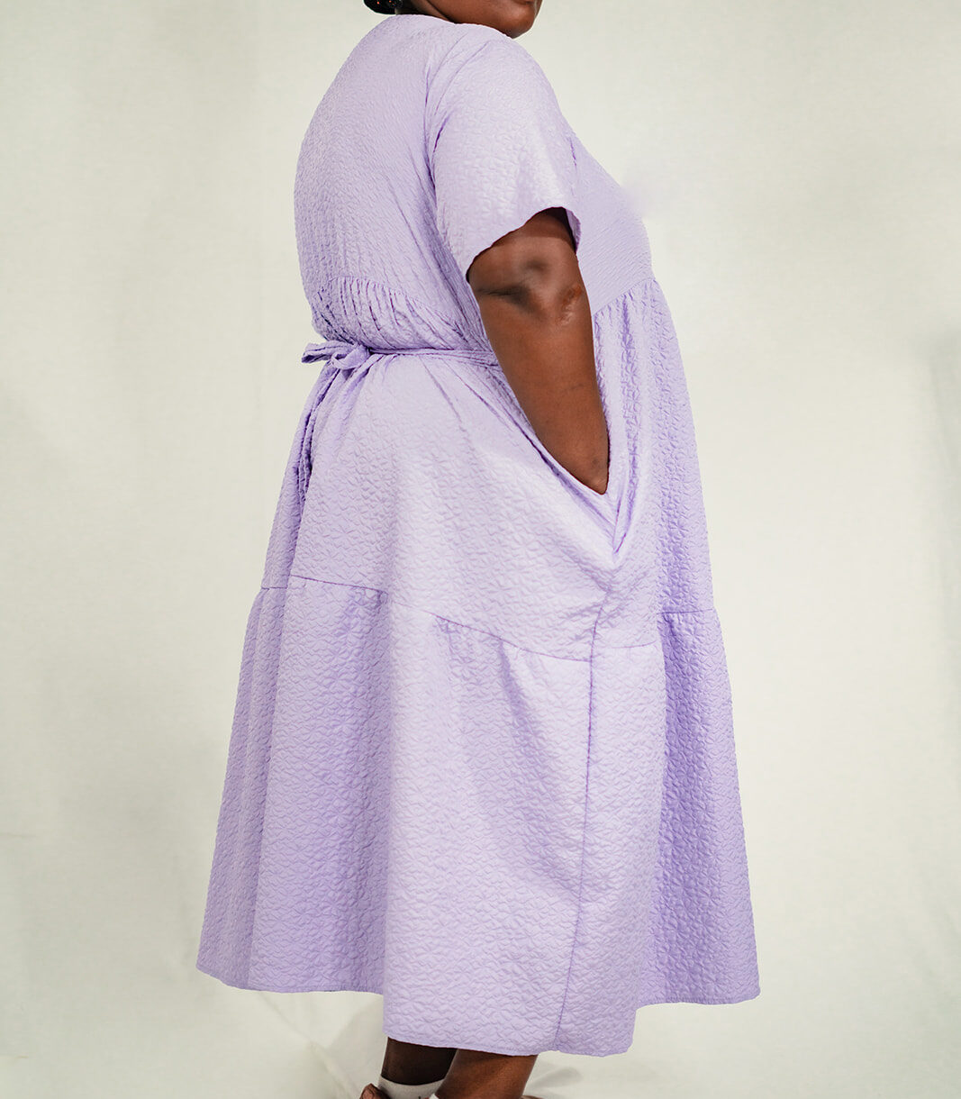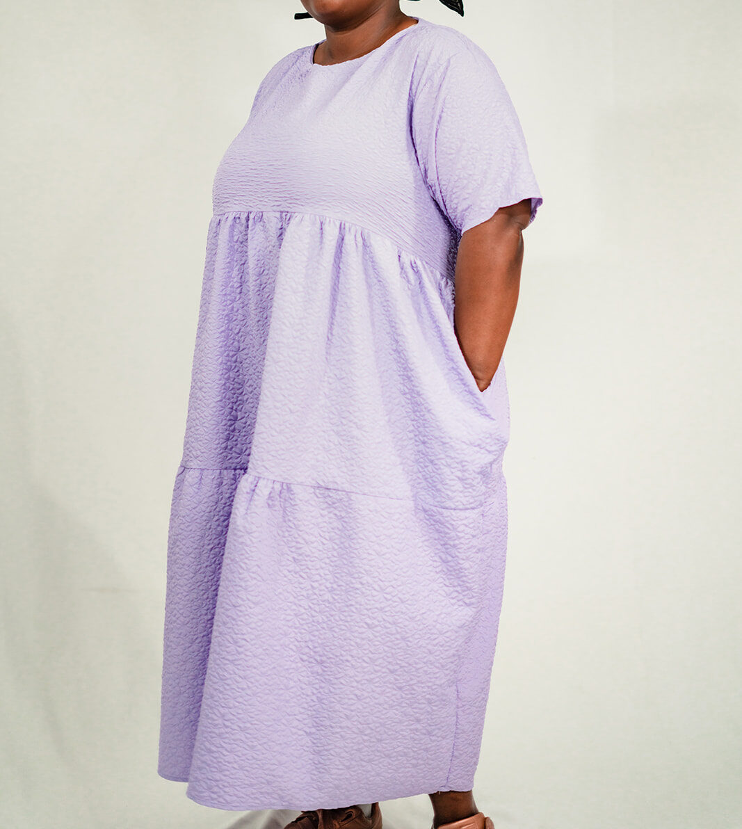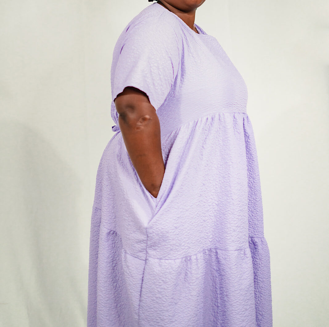 Elevate your style with our enchanting long lilac dress featuring an embossed floral design. This dress is a perfect combination of grace and sophistication, designed to make a statement wherever you go. The short sleeves provide a touch of comfort, while the pockets add a practical and stylish element to the dress. Available in both lilac and black, you have the choice to express your unique style. Whether it’s a formal event, a romantic dinner, or a special occasion, this dress is sure to make you feel like the belle of the ball. Step into elegance with our long lilac dress. Shop now and indulge in timeless beauty and effortless glamour!